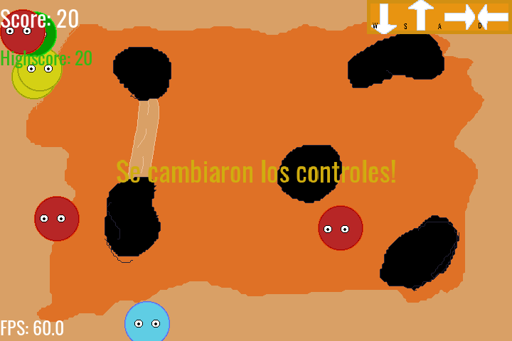 A game where chaos grows, and you just have to dodge it to keep accumulating points. Have fun dodging enemies, and most importantly, keep raising your high score to see your skills in the game. Don’t let the enemies touch you while collecting points; each enemy has its own behavior, so take advantage of that to get your way. But don’t think it’s going to be that easy — every so often, the controls are randomly reversed, making it harder, but learn to master them and play the game your way by following what the panel at the top right says. ENJOY!